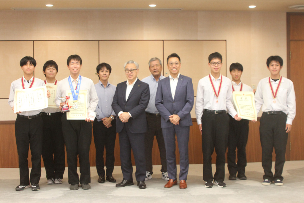 長崎県で開催された全国高校総体(インターハイ)で好成績を収めた豊橋商業高校弓道部男子が6日、豊橋市役所を訪れ、浅井由崇市長に喜びを報告した。