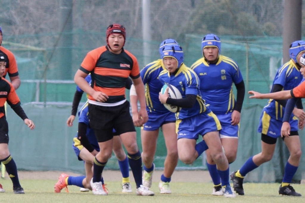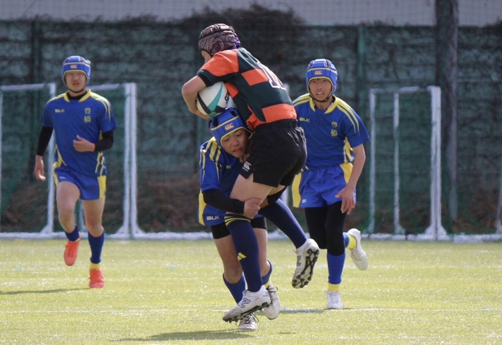 開始2分に長久手RSがトライとキックで主導権を握った。その後も優勢に進め、豊橋RSは花田大始(高師台1年)と鈴木笙左(三谷中2年)のトライなどで応戦するが、長久手RSも好機を確実に得点を絡め、前半終了後で12ー21と、豊橋RS9点のビハインド。
