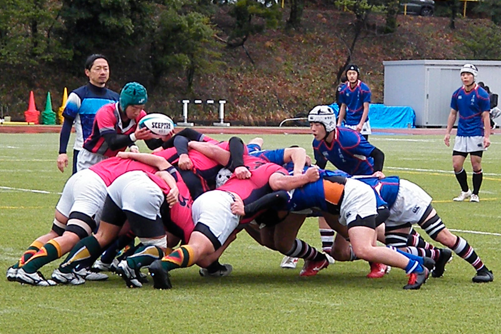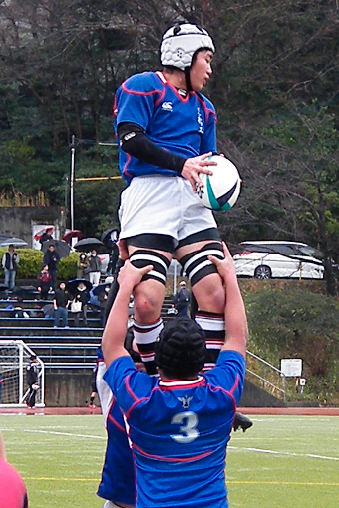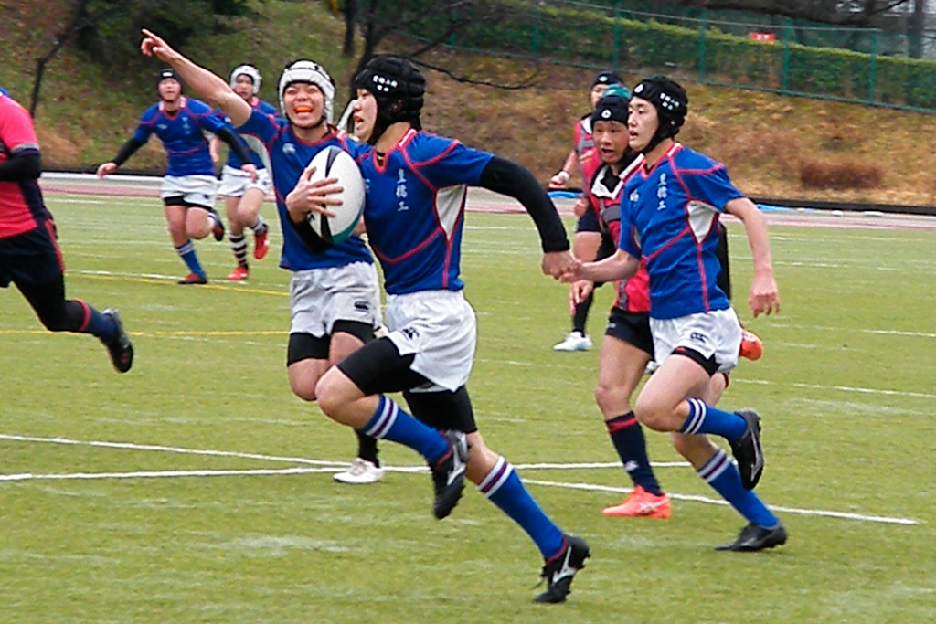 県新人戦で優勝し、愛知合同A代表として上位区分(Aブロック)に参戦。第1試合の岐阜合同A戦は、前半、FWロック坂神優斗(豊橋工2年、南陽中出)のトライで2点リードで折り返し、後半はB Kセンター山﨑椋太(時習館3年、蒲郡中出)のトライやBKウイング竹田勘太(豊橋工3年、羽田中出)の50㍍独走トライで畳み掛け、26ー5で勝利した。時習館主将の近藤脩生(3年、羽田中出)は「序盤は緊張で体が重かったが、最初の得点(トライ)で硬さが取れ、スピードに乗ることができた」と振り返る。自身もFWロックで攻守に存在感を放った。