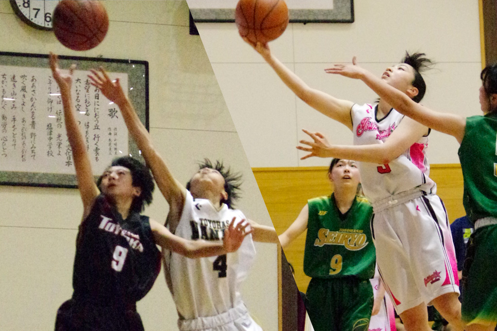 53回を数える東三河中学校選抜バスケットボール大会は3、4の両日、蒲郡塩津中体育館ほかで開かれ、男子は豊岡、女子は吉田方が優勝旗を手にした。地区予選を勝ち上がった男女各16チームが出場。男女とも豊橋勢が勢力図の中心軸だったが、特に男子は2週間前の市内大会から大きな変動があった。