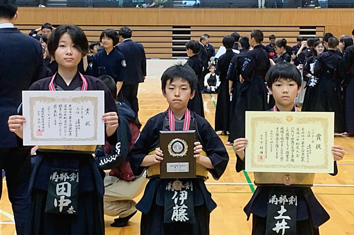 ①豊橋南部少年剣道教室(先鋒夏井綾汰、次鋒鈴木望央、中堅阿部日奏、副将中島拓杜、大将伊藤朱紀)②二川剣友会③津具剣道教室、御油剣道教室