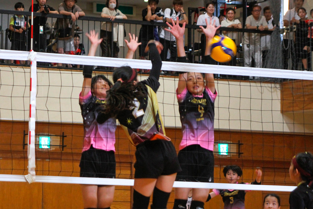 24チームが出場した女子部門のうち、第3シードの高師台クラブ(西崇秀監督)が順当に勝ち進み、東三河勢で唯一4強入りした。二回戦で美川VC(西三河4位)を下し、準々決勝でプリューム(名古屋6位)と対戦。第1セット序盤から高師台クラブが優勢に進め、終盤一気に畳み掛けて21-18で粘るプリュームを振り切った。2セット目も前半から速攻やサーブ、ブロックが冴え、2桁に乗せた時点でダブルスコア。徐々に相手の戦意を削って21-12で快勝した。