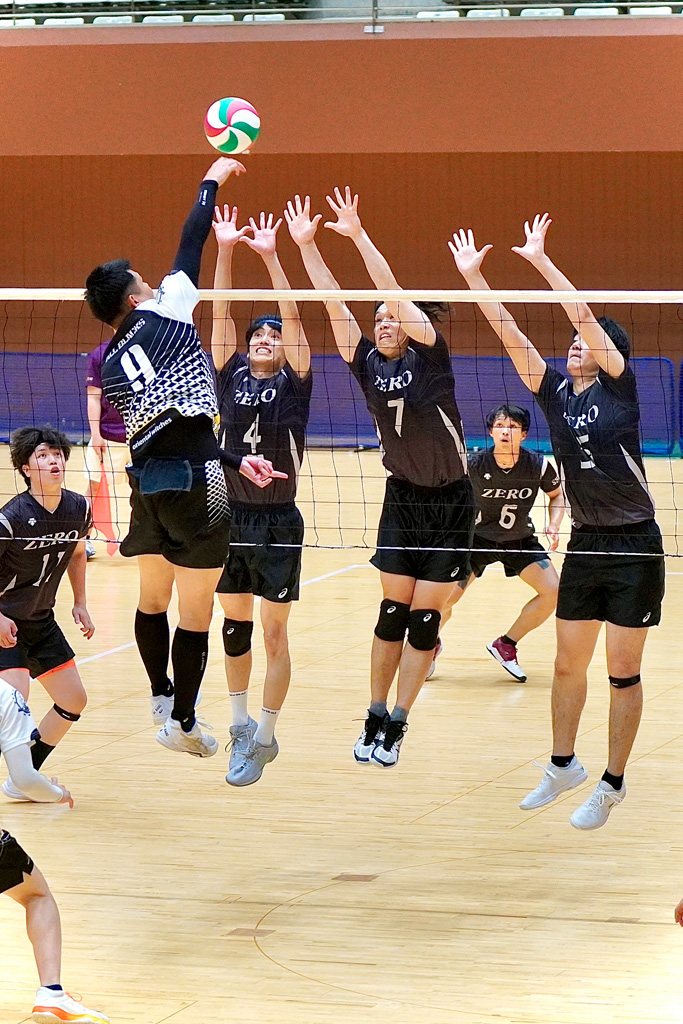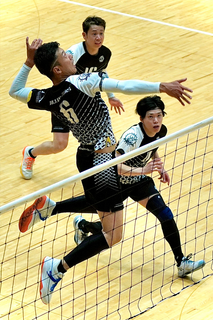 佐藤晃太郎のレシーブから木邨幸之助の多彩なトスが冴え、序盤から一気に9ー0とリード。第1セットを先取すると、第2セットは渡會昂平の緩急のある攻撃や南祐太の力強いスパイクで主導権を譲らずストレート勝ち。