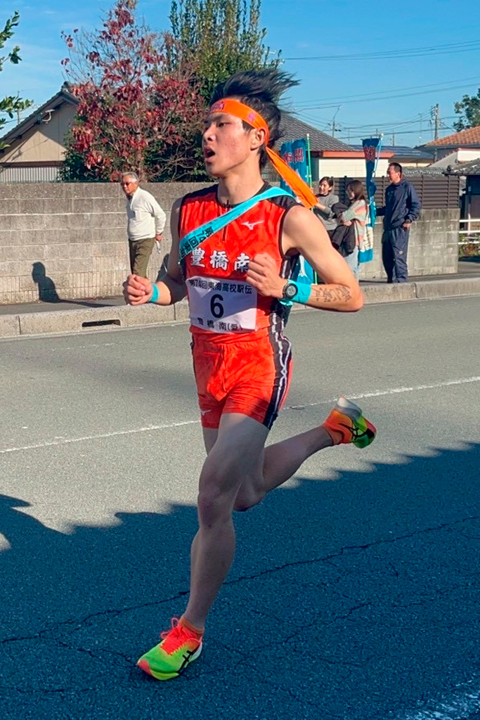 大会は松坂市の三重高校を発着点とする男子7区間42.195km、女子5区間21.0975kmで行われ、各24校が出場。県大会で6位入賞し、創部初の東海進出を果たした豊橋南男子は2時間16分15秒で19位だった。担当区間を若干入れ替えたが、県大会と同じ布陣。1区間瀬凌成(3年)が上位戦線に絡む4位で存在感を見せると、2区山口獅恩(2年)、3区西田健助(3年)、4区望月來椰(同)、5区小瀧直央(2年)は順位を落としたものの、モチベーションを上げながら前を追った。6、7区は県大会同様、日比野隆太、久米秀和の3年生が担当。愛知代表のプライドを胸に堅実な走りで「公立魂」を発信した。今回の初参戦は次への試金石。襷を後輩に託した3年生は「これからもこの東海街道を南高の主戦場にしてほしい」と期待を込めた。
